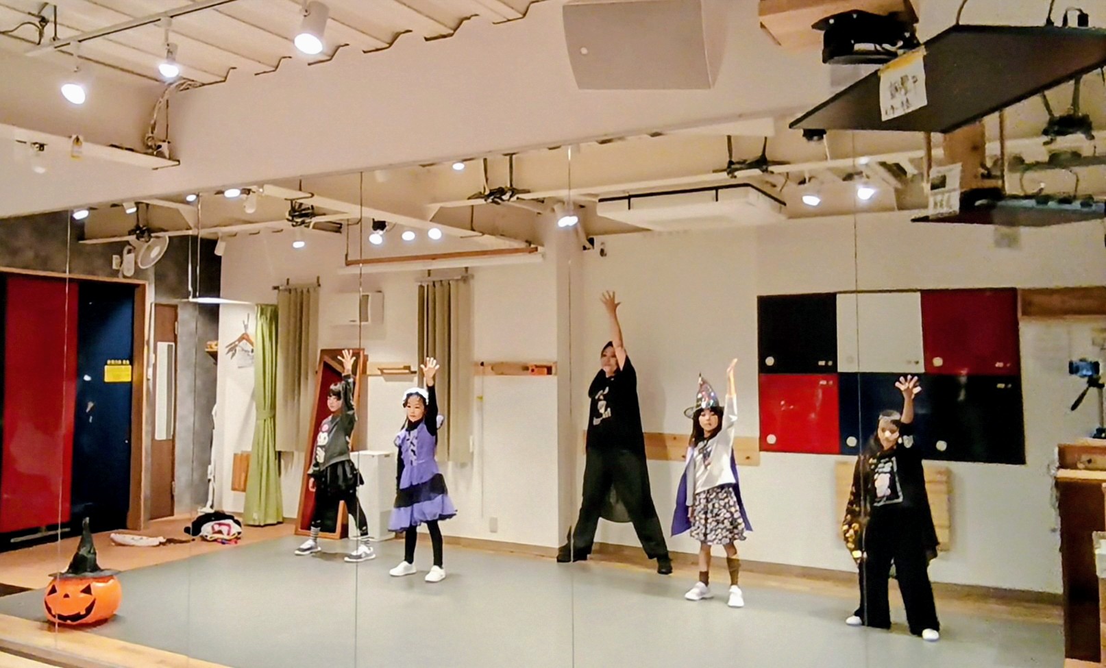 先日10/30(水)の[JAZZHIPHOP]小学生クラスでは、軽く仮装をしてハロウィンの曲を踊りました♪